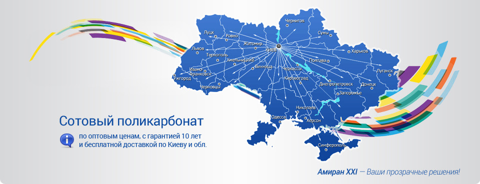 Мы доставляем сотовый поликарбонат по Киеву, Киевской обл. и Украине абсолютно бесплатно (от 1-го листа)! Подробнее о доставке в Ваш город спрашивайте у наших менеджеров
